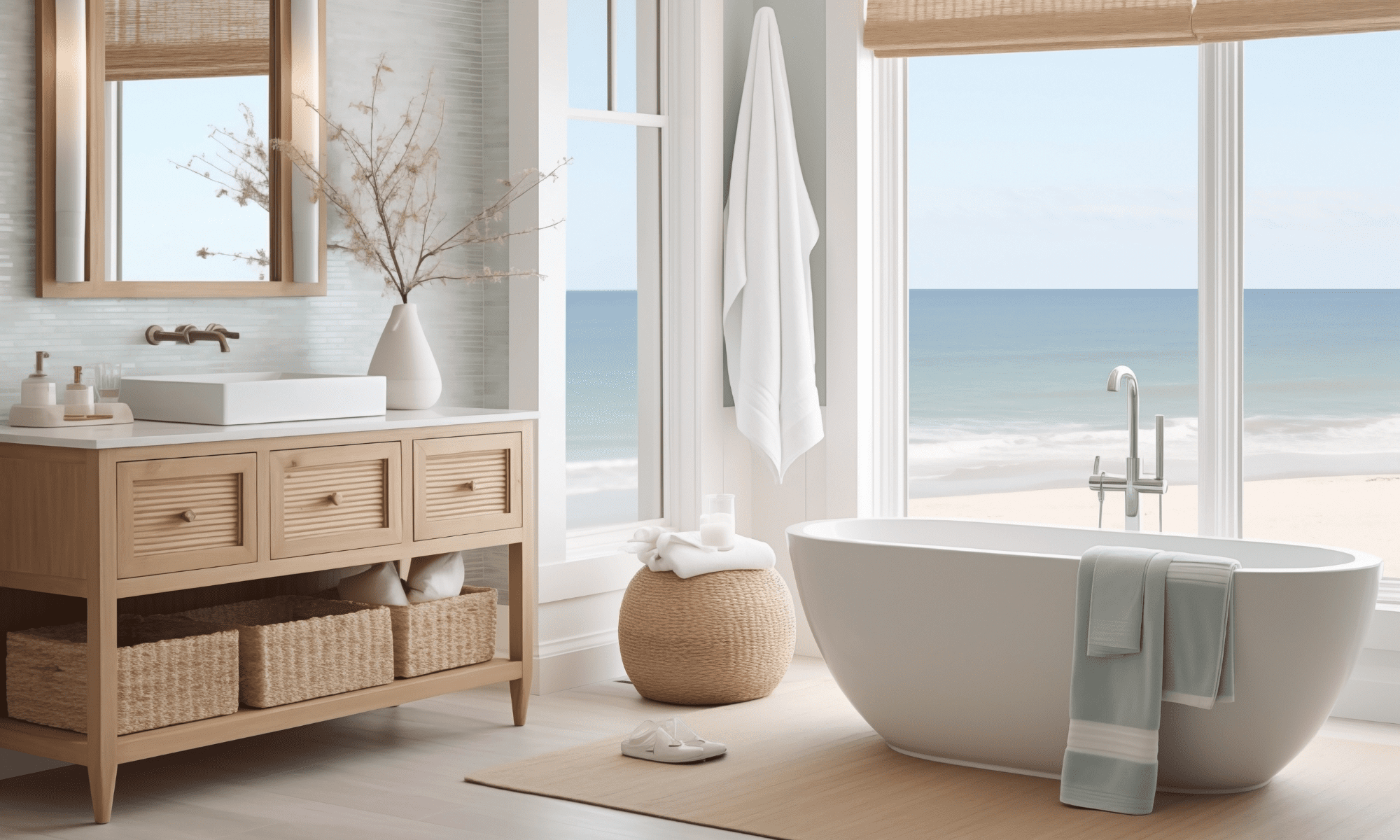 Moving away from stark whites, warm white tones create a cozy and inviting atmosphere in coastal bathrooms. These shades work harmoniously with both cool and warm accents, offering flexibility in design choices.